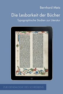 Bernhard Metz: Die Lesbarkeit der Bücher. Typographische Studien zur Literatur, München: Wilhelm Fink 2016 (= Zur Genealogie des Schreibens, Bd. 17). |